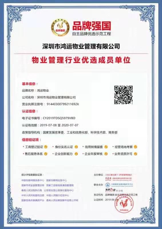 2019年7月,鴻運(yùn)物業(yè)協(xié)助國(guó)家發(fā)改委、人民日?qǐng)?bào)社,推動(dòng)品牌強(qiáng)國(guó)計(jì)劃、自主品牌優(yōu)選示范工程。鴻運(yùn)物業(yè)作為物業(yè)管理行業(yè)全國(guó)首家入圍品牌強(qiáng)國(guó)計(jì)劃,與支付寶、碧桂園、恒大集團(tuán)、格力等強(qiáng)勢(shì)占領(lǐng)稀缺性資源,緊跟國(guó)家政策推動(dòng)品牌戰(zhàn)略方針,謀跨越、促升級(jí)、破壁壘、猛崛起。
