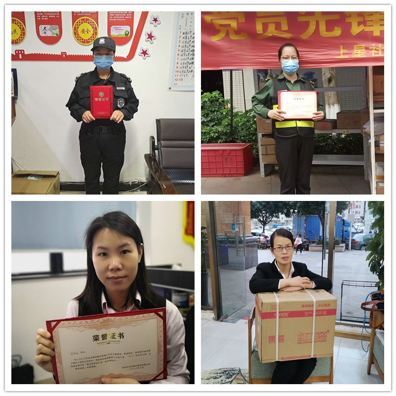 ?????? 根據(jù)征集到的材料,結(jié)合投票和領(lǐng)導(dǎo)評(píng)選,婦女節(jié)“最美戰(zhàn)疫逆行者”主題活動(dòng)的獲獎(jiǎng)名單出爐,前5名依次為:沙頭管理處保安史軍華、星悅豪庭管理處保安李冬梅、盛芳園管理處客服郭華容、麒麟花園管理處保安李鳳荷、總辦品質(zhì)部主管鄧亞蘭。公司已為獲獎(jiǎng)員工發(fā)放榮譽(yù)證書(shū),并根據(jù)個(gè)人需求購(gòu)買(mǎi)和發(fā)放相應(yīng)的獎(jiǎng)品。同時(shí),對(duì)每一位參與者,我們都贈(zèng)送精美小禮品,感謝你們的積極參與!