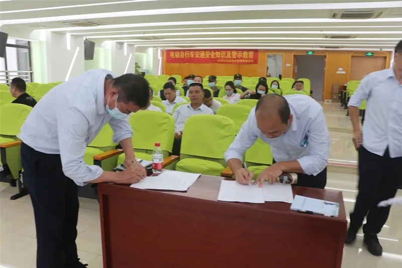 ?????? 之后,通過播放典型事故視頻和警示片的方式,讓員工們更加直觀地受到觸動,從中吸取教訓。最后,參會人員現(xiàn)場簽署《電動車駕駛?cè)藛T承諾書》。