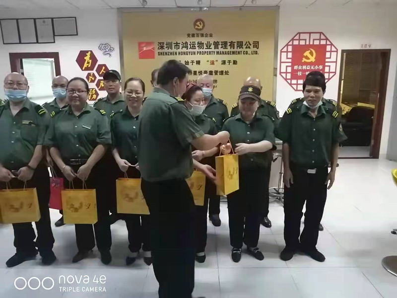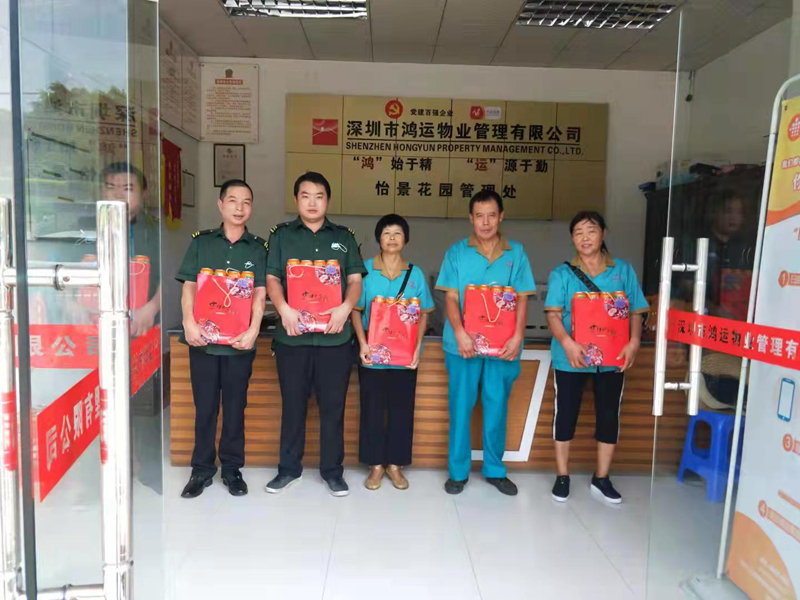 ? ? ? ?中秋節(jié)前夕,鴻運(yùn)物業(yè)向全體員工發(fā)放月餅禮盒,通過這圓圓月餅,向每一位員工送上最真誠的祝福,感謝大家的辛勤付出。鴻運(yùn)物業(yè)黨支部還舉辦了“黨群同慶·情滿中秋”主題黨群活動(dòng),和總公司員工一同包月餅、做花燈,祈愿萬家團(tuán)圓、歲物豐成。各管理處員工在小區(qū)布置燈籠、彩帶、橫幅,營造濃濃的節(jié)日氛圍。
