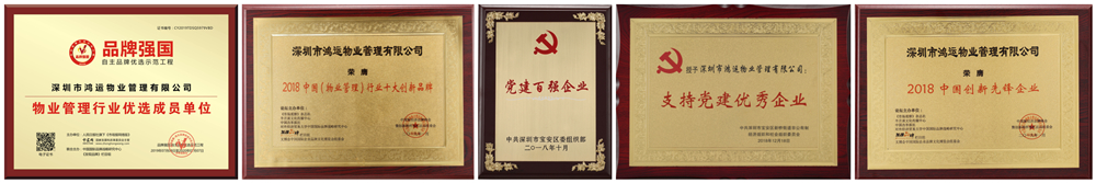 ? ? ? ?鴻運(yùn)物業(yè)不僅得到住戶的肯定,更獲得當(dāng)?shù)卣恼J(rèn)可,先后榮獲以下稱號(hào):寶安區(qū)物業(yè)管理先進(jìn)單位、寶安區(qū)文明誠信企業(yè)、深圳市物業(yè)管理優(yōu)秀項(xiàng)目、節(jié)水先進(jìn)單位、寶安區(qū)黨建百強(qiáng)企業(yè)、支持黨建優(yōu)秀企業(yè)、物業(yè)管理服務(wù)行業(yè)優(yōu)選品牌、中國創(chuàng)新先鋒企業(yè)、中國(物業(yè)管理)行業(yè)十大創(chuàng)新品牌、品牌強(qiáng)國物業(yè)管理行業(yè)優(yōu)選成員單位、廣東省守合同重信用企業(yè)、抗擊新冠肺炎疫情先進(jìn)單位……