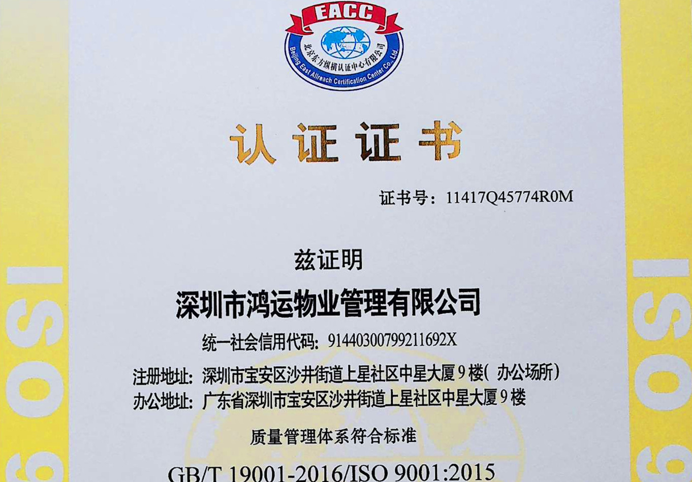 ISO9001認(rèn)證證書
