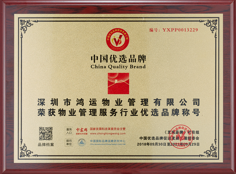 ?????? 2018年9月,經(jīng)由中國(guó)優(yōu)選品牌促進(jìn)發(fā)展工程深圳地區(qū)組委會(huì)實(shí)地調(diào)查和嚴(yán)格篩選,“鴻運(yùn)物業(yè)”脫穎而出,被評(píng)選為物業(yè)服務(wù)行業(yè)中國(guó)優(yōu)選品牌,獲得央視CCTV《發(fā)現(xiàn)品牌》欄目報(bào)道,同時(shí)公司信息有幸刊登在中國(guó)優(yōu)選品牌促進(jìn)發(fā)展工程官方網(wǎng)站上。