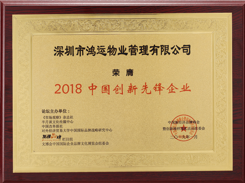 ?????? 2019年1月,鴻運(yùn)物業(yè)陳總受邀作為行業(yè)代表嘉賓,在北京人民大會(huì)堂參加2019中國(guó)新經(jīng)濟(jì)品牌峰會(huì)暨創(chuàng)新榜樣巡禮活動(dòng)會(huì)議,被現(xiàn)場(chǎng)授予2018中國(guó)(物業(yè)管理)行業(yè)十大創(chuàng)新品牌、2018中國(guó)創(chuàng)新先鋒企業(yè)的獎(jiǎng)?wù)拢员碚螟欉\(yùn)物業(yè)在中國(guó)物業(yè)行業(yè)上的創(chuàng)新投入。