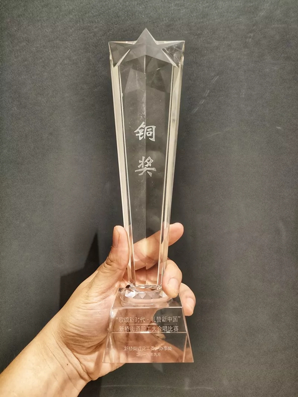?????? 時(shí)光如水,歲月如歌,祖國(guó)70周年華誕即將到來(lái),為強(qiáng)化愛國(guó)之志、激勵(lì)愛國(guó)之情,新橋街道“歌頌新時(shí)代·禮贊新中國(guó)”職工大合唱比賽,于9月27日晚上19:30,在新橋文化藝術(shù)中心大劇院圓滿舉行。上星工作站攜手鴻運(yùn)物業(yè)28名員工,組成上星合唱隊(duì),代表上星社區(qū)參加了此次合唱比賽,現(xiàn)場(chǎng)演唱“我的中國(guó)心”“歌聲與微笑”兩首曲目,最終斬獲佳績(jī),贏得銅獎(jiǎng)。