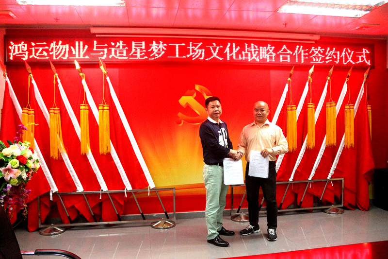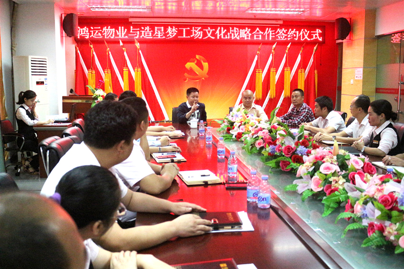 ????? 雙方就惠州物業(yè)項(xiàng)目、安保項(xiàng)目、房屋租售項(xiàng)目三個(gè)方面達(dá)成合作共識,并現(xiàn)場簽署戰(zhàn)略合作協(xié)議。我司向造星夢工場盧總、劉總依次介紹鴻運(yùn)高層員工,然后共敘佳話,同繪愿景。