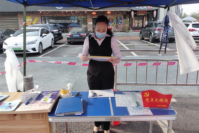 ????? 沙頭城中村分布在沙井路的兩側(cè),不僅面積大,呈塊狀零星分散,而且人員雜,流動性大。龔建芬同志所面對的有商戶、樓棟長、房東、租客,還有本地居民。為做好疫情防控工作,龔建芬同志和管理處的一眾同事,常常是“雙腿酸痛、喉嚨沙啞”,僅出入卡就辦理和發(fā)放了近萬張。