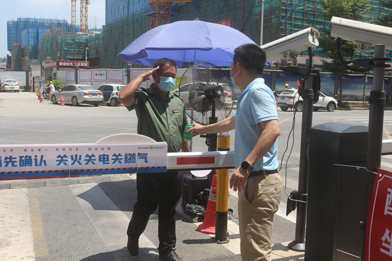 ? ? ? 總經(jīng)理陳喜祥為保安員們送上飲料,一聲聲“辛苦了”道出對(duì)保安員工作的肯定和感謝。陳總要求各物業(yè)服務(wù)中心備齊解暑應(yīng)急藥品,定期開(kāi)展“送清涼”活動(dòng),讓員工在辛勤的工作中感受到公司的關(guān)懷。