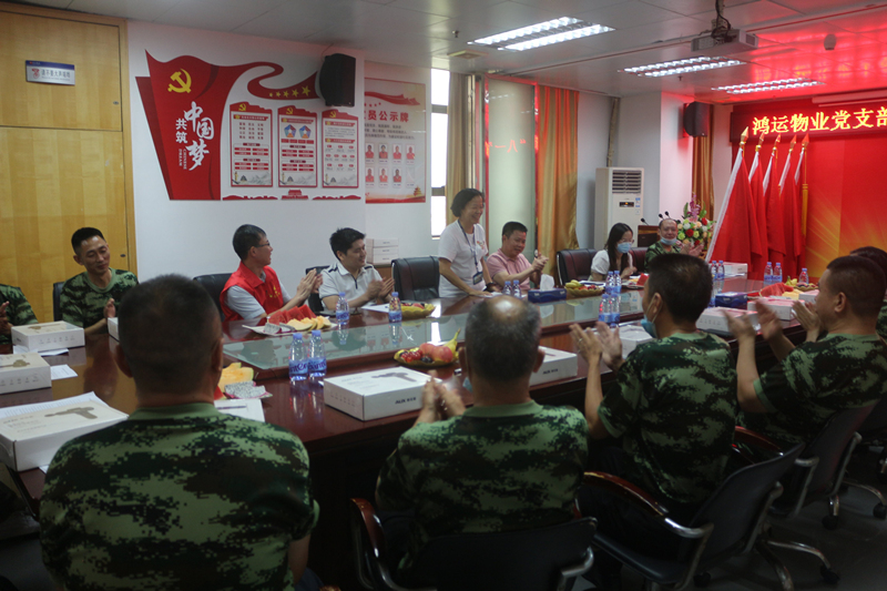 ? ? ? ?哪里有危險(xiǎn),哪里就有他們的身影,中國軍人如鋼鐵長城,守護(hù)萬家燈火,守護(hù)歲月靜好。即便退伍,他們?nèi)员3周娙孙L(fēng)采,以超高的紀(jì)律性和責(zé)任意識,在各行各業(yè)發(fā)揮中流砥柱作用。7月30日,八一建軍節(jié)來臨之際,鴻運(yùn)物業(yè)黨支部聯(lián)合公司,在新橋“兩新”組織黨委的大力支持下,舉辦“發(fā)揚(yáng)軍人硬作風(fēng)·立足崗位建新功”慶八一退伍軍人座談會,致敬退伍軍人,弘揚(yáng)優(yōu)良軍風(fēng)。新橋“兩新”組織黨委專職副書記吳玉芹同志、廣場黨總支書記李雪勇同志應(yīng)邀蒞臨指導(dǎo)。